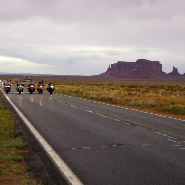 Am Vormittag genießen wir die fantastische Aussicht am Grand Canyon, bevor wir entlang des Südrandes weiterfahren und anschließend den Grand Canyon Nationalpark am Osteingang wieder verlassen werden. Die Motorrad Reise führt uns weiter zum unglaublichen Monument Valley. Das Land der Navajos, eine klassische Landschaft des Wilden Westens in Arizona mit ihren roten Sandsteinen, einem Schauspiel aus Farbeffekten und geologischen Formationen, die aus einer endlos wirkenden Fläche aus Treibsand herausschauen. Erst wenn wir am Monument Valley ankommen, werden wir merken, wie sehr unsere Auffassung vom Wilden Westen tatsächlich von dieser Landschaft geprägt war. Eine solche Landschaft existiert natürlich auch in anderen Teilen der Welt, doch es scheint, als wäre es nirgendwo so einzigartig wie hier. Diesen Abend fahren wir hinab ins Tal und lassen uns von unserem Tourguide in Najavo mit einem traditionellen Abendessen verwöhnen.
