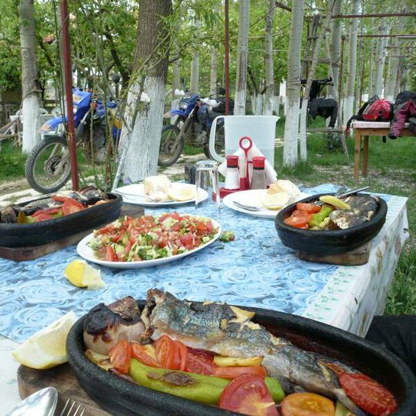 Heute geht die Route zuerst über Asphalt und zwar zu durch einsame Naturwälder, wo wir auf anspruchsvollen Naturwegen den Gipfel der Caldagi auf 2.150 Höhenmetern erreichen werden. Anschließend erreichen wir die asphaltierte Küstenstraße, auf der wir uns während der Fahrt nach Fethiye von der anstrengenden vorherigen Schotterfahrt erholen. Die Landschaft ist unbeschreiblich, weshalb man sie selbst gesehen haben muss. Das Abendessen gibt es heute auf dem Fischmarkt von Fethiye, aber keine Sorge, es gibt nicht nur Fisch, sondern auch unzählige andere Köstlichkeiten der türkischen Küche.