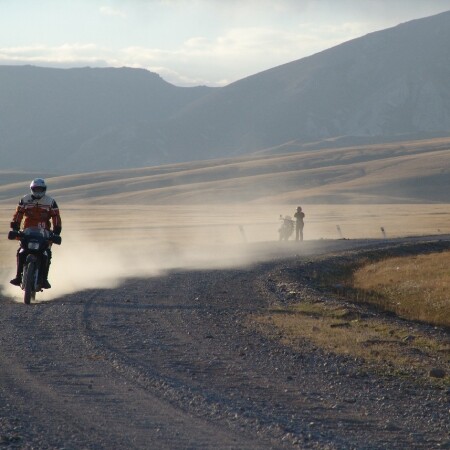 Uma viagem de moto e férias pela lendária Pamir Highway. A partir do Quirguistão, atravessa paisagens deslumbrantes passando pelo Ak Baital com seus 4.655 metros até o Tajiquistão. Experimente como motorista uma rota que é chamada pelos moradores locais apenas de "a estrada".
